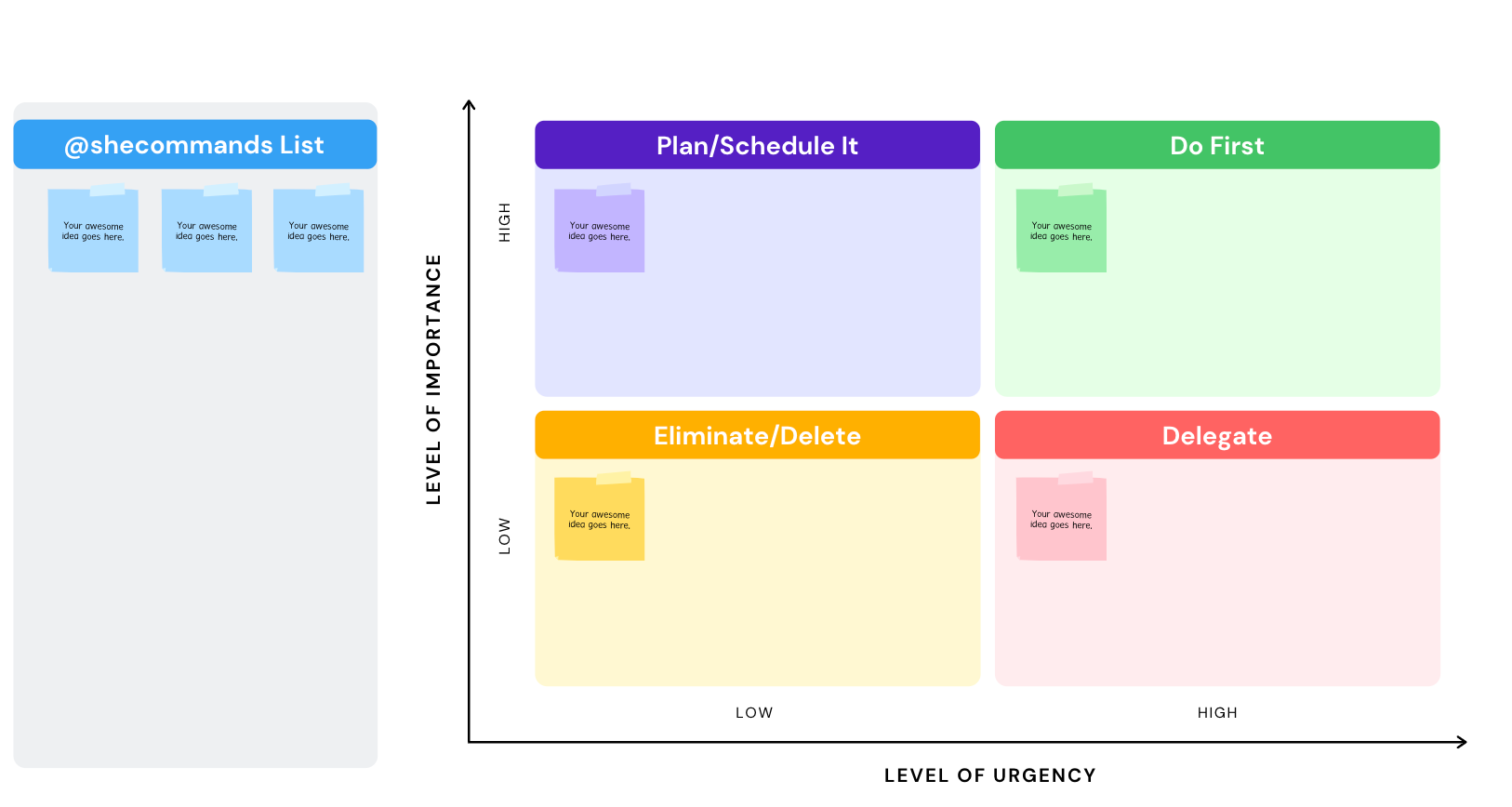 Rome wasn't built in a day, neither was your success. Take the time a prioritize the tasks that need to be completed. It is time that you figure out the difference between important and urgent. For instance, if something has a high level of importance but love level of urgency, just schedule it for a later date. If something has a high level of urgency but a low level of importance, delegate the task. But if something is both a high-level of urgency and importance, well make sure you get that done first. Check out my matrix: